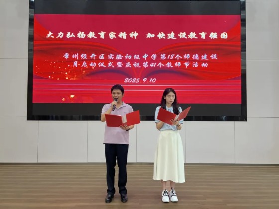 9月10日下午,经开实验初中全体教工齐聚一堂,隆重举行以《大力弘扬教育家精神,争做新时代“大成教师”》为主题的第18个师德建设月启动仪式暨庆祝第41个教师节主题活动。
